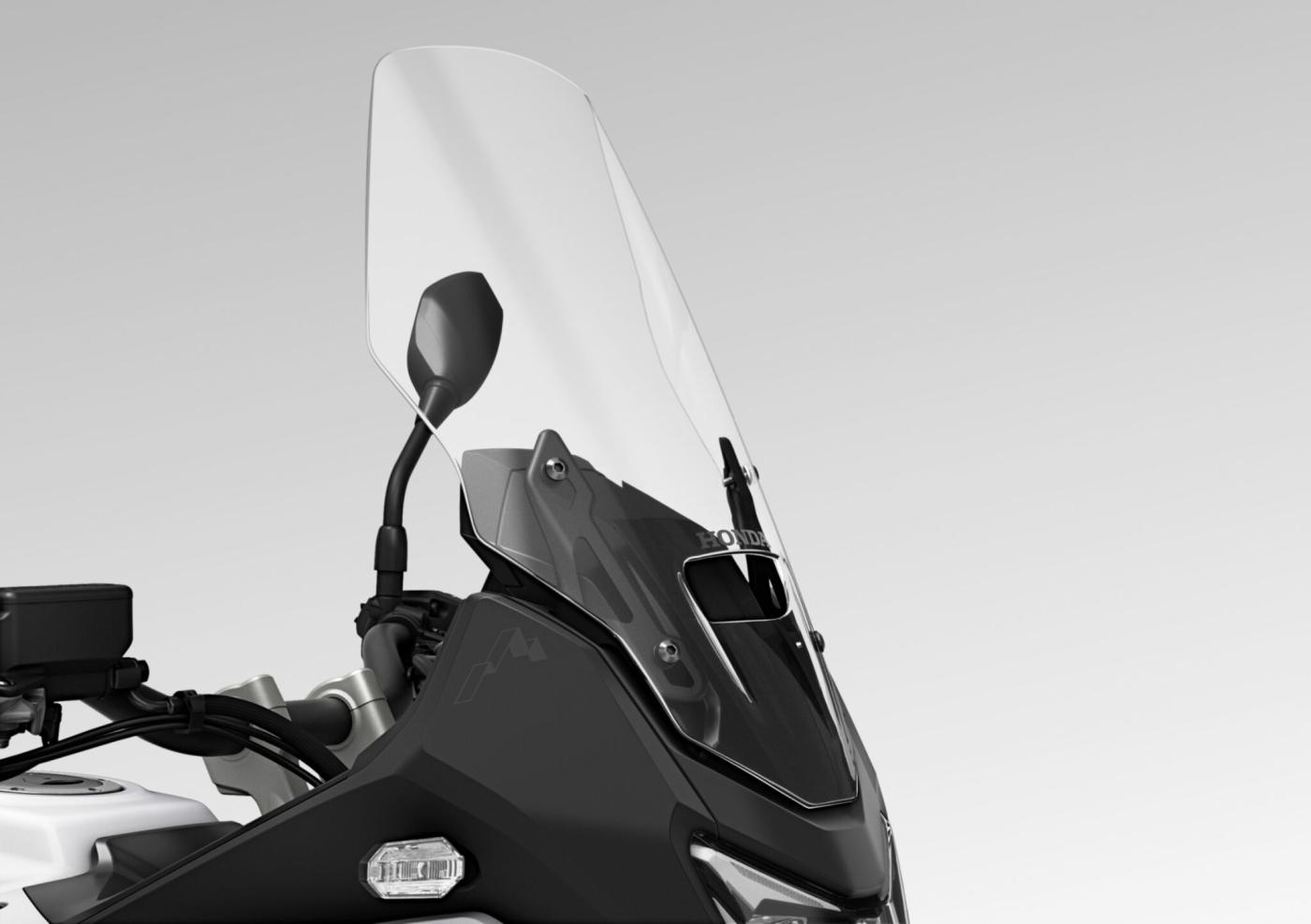 Plexi bylo přepracováno tak, aby odpovídalo novým světlometům, byly přidány odvětrací kanálky a optimalizováno zakřivení v souladu s designovými změnami kolem přední části. Přispívá k vynikajícímu pohodlí při vysokých rychlostech tím, že snižuje třes hlavy a hluk větru na dálnicích. Povrch je extra odolný proti poškrábání. Materiál: Tvrdý polykarbonát Barva: Čirá • Nese logo Honda • Prodlouženo o 75 mm Poznámka: Pro instalaci není potřeba žádná další montážní sada, protože se montuje přímo jako náhrada standardního plexi.